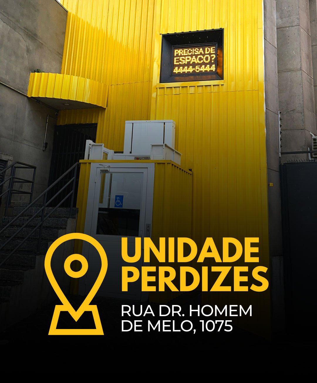 Para você que frequenta, trabalha, estuda ou mora na região de Perdizes, Pompéia, Vila Madalena, Sumaré, Água Branca, temos uma novidade! Smartstorage Perdizes, uma localização estratégica que oferece acesso rápido e conveniente a diversas facilidades: Avenida Sumaré(1 min), Hospital Albert Einstein (1 min), PUC (3 min), Rua Cardoso de Almeida (3 min), Shopping Bourbon (5 min), Shopping West Plaza (5 min), Avenida Pompéia (5 min) e Hospital São Camilo (7 min). SmartStorage, facilitando sua vida e seu negócio.